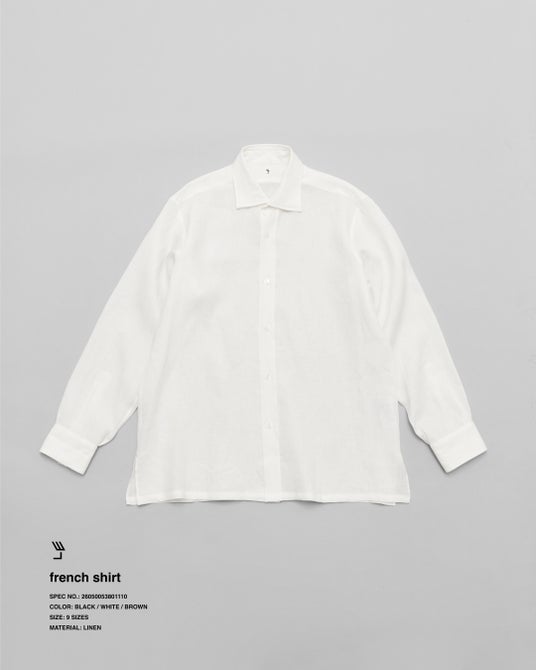 今回は、ヨーロッパの王道的なリネンのイメージを出発点に、フランスの正統派トラディショナルシャツの流れを汲みながら、現代的なバランスで再構築しました。