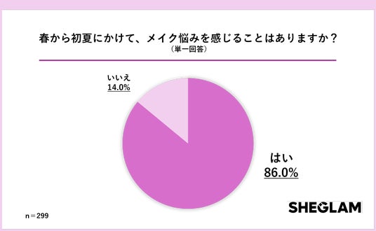 1.約86%の女性が、春から初夏にメイクの悩みを感じることがあると回答