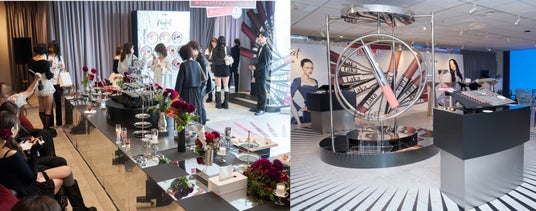 イベント会場中心には『パーフェクトツインリップ』のテスターゾーンを作り、全10色のカラーバリエーションやテクスチャーを手元や口元で試していただき、賑わいをみせました。リキッドルージュのみでの使用では光沢感のあるサテンマットが溶けるように馴染み、その上から透明なグロウグロスをのせると、同じ色でも雰囲気が変わる様子や、こすっても全く落ちない様子に「すごい!」「1本で2通りの魅せ方ができるからメイクが楽しくなる!」とのお声が多く飛び交いました。