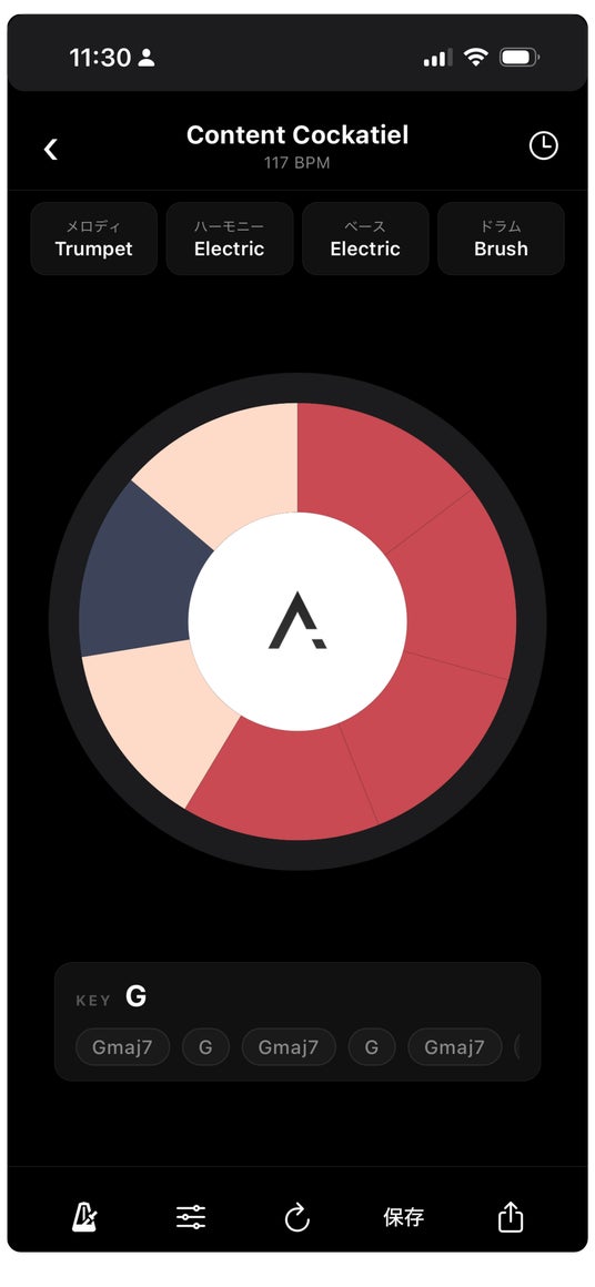 MusicTGAは、コード進行・メロディ・リズムのMIDI(*1)を生成できるAI作曲アプリです。ユーザーはビートや雰囲気を設定することで、制作したいイメージに合ったMIDI素材を生成し、DAW(*2)に読み込んで編集・アレンジできます。