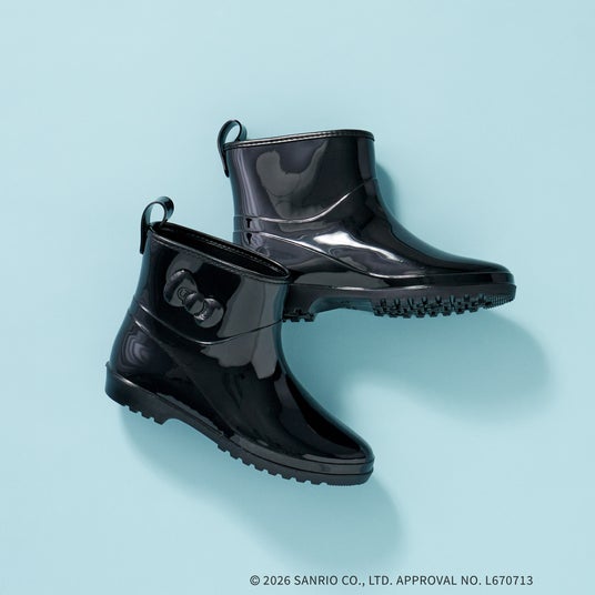 サイドにハローキティのリボンのパッチを配したショート丈のレインブーツ。