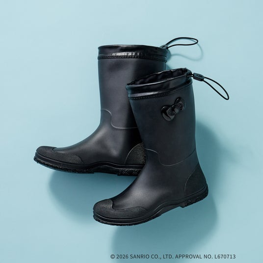 サイドにハローキティのリボンパッチを配したロング丈のレインブーツ。