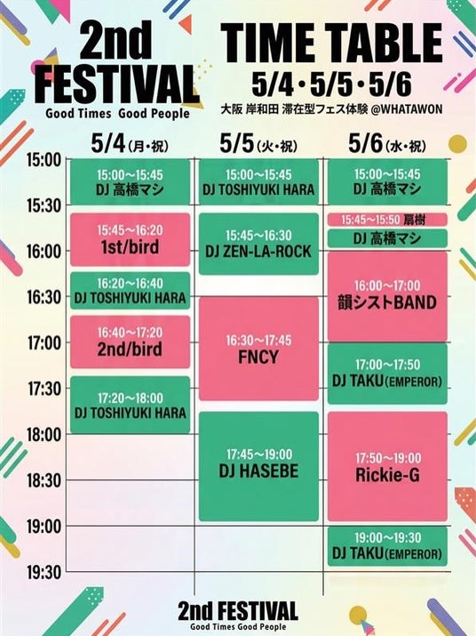 2周年記念大型フェス「Good Times Good People」のタイムテーブルが公開。