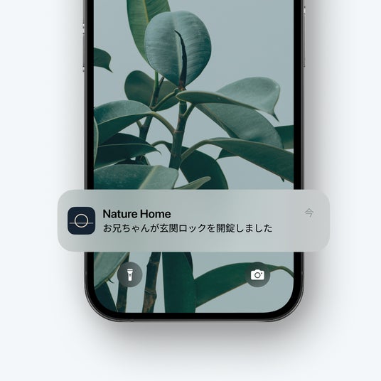 自分が自宅に不在の際、塾や習い事から子どもが帰ってくる時間は仕事中でも気になるもの。「Nature Key」を持った家族が帰宅すると、スマートフォンに通知が届くので、わざわざアプリを開かなくても「帰ってきた」を確認できます。夜の外出が多い家庭や、子どもに初めて鍵を持たせる親御さんにもおすすめの使い方です。在宅中は通知をオフにする設定も可能です。