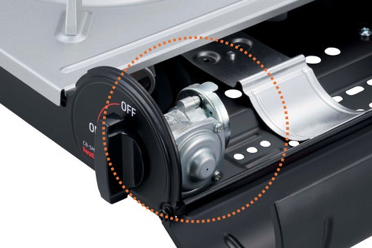 3.安全装置: 万一カセットボンベが過熱された際に自動的に外れる「圧力感知安全装置」などを備えています。