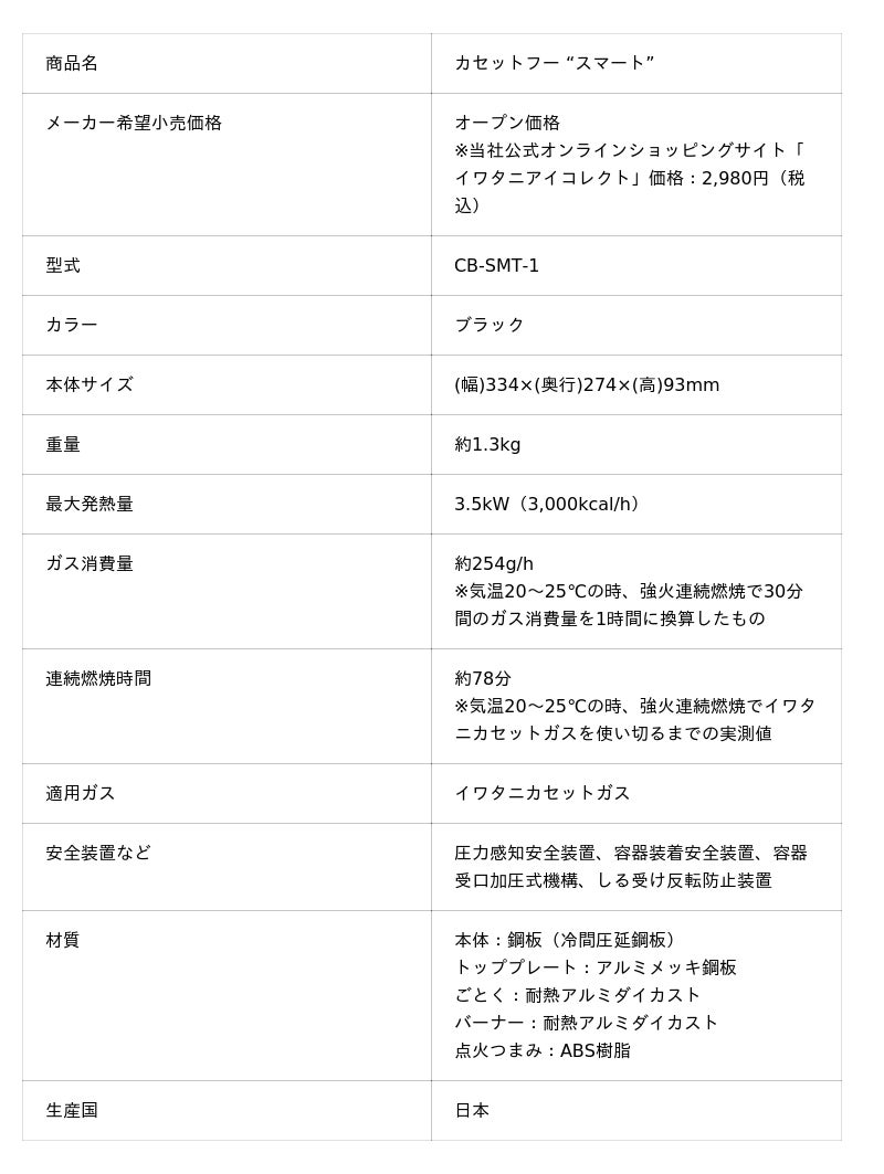商品購入ページURL(イワタニアイコレクトサイト):https://www.iwatani-i-collect.com/shop/g/g2000008310/