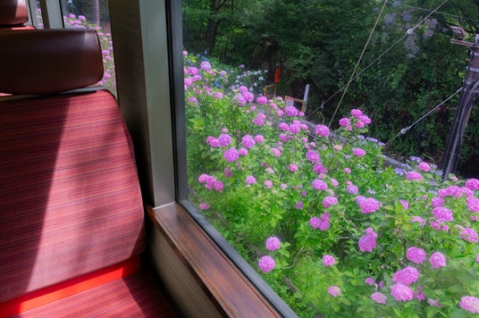 この時期の箱根登山電車は沿線にあじさいが咲き誇り、車窓に触れるほど間近に楽しめることから「あじさい電車」という名称で親しまれています。
