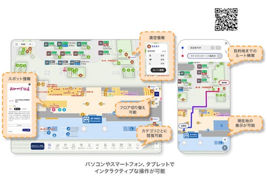 手ぶら観光の更なる推進に向けた取組の一環として、京都市等が「京都駅デジタルマップ~Kyoto Station Smart Navi~(通称「駅スマ」)」を運用しています。駅スマの中で、「Crosta京都」の位置情報等も確認できます。