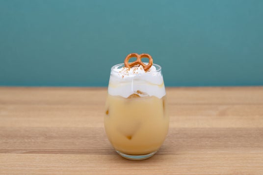コーン茶のラテにクリームをトッピングした冷たいドリンクです。