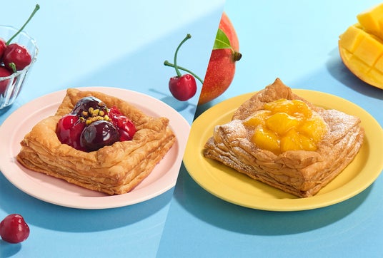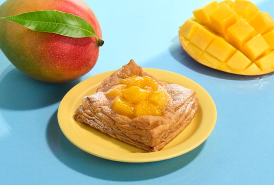 バターをたっぷり練りこんだ729層のサクサクパイ生地に、なめらかなカスタードクリームと、マンゴーフィリングを贅沢に乗せました。濃厚な甘味の余韻が長く続く味わいに仕上げました 。