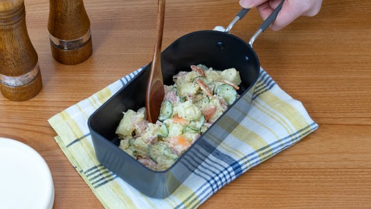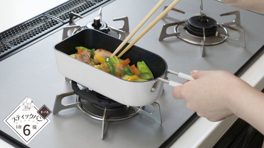 1台6役。お弁当調理やちょっとした副菜作りに。狭いキッチンでも隙間に収まるスリムなフライパン。