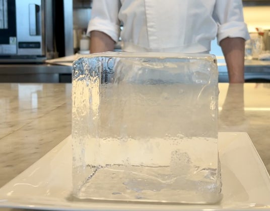 中央アルプスの麓、地下250mより汲み上げた深層天然水を昔ながらの製法でじっくり48時間かけて凍らせた高純度な氷溶けにくく澄み切った美しい氷