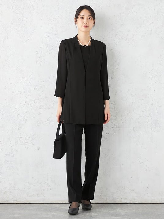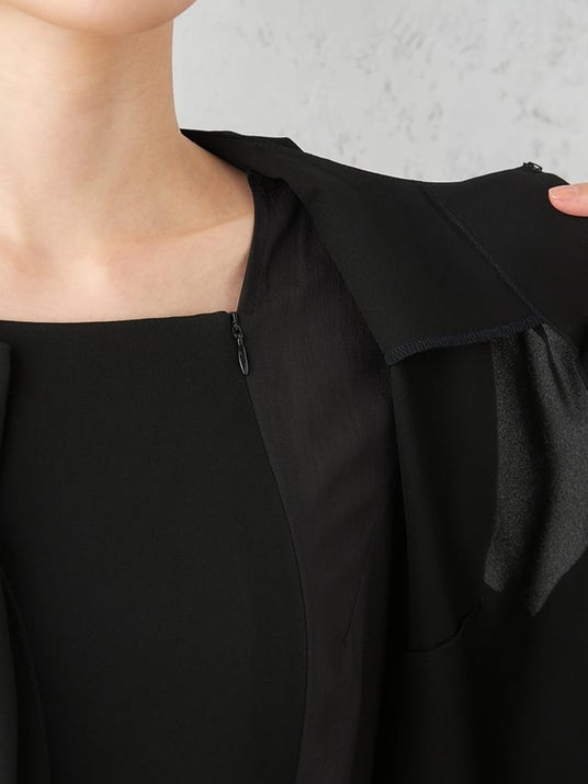 近年の猛暑により、夏のフォーマルシーンでは「ジャケットを羽織るのが辛い」「汗によるベタつきや着脱の不便さ」が大きな課題となっています。夏が年々長期化する気候変動の影響を受け、当社ではサマーフォーマルカテゴリーのラインアップを大幅に拡充いたしました。本シリーズは、全商品に軽量素材を採用。さらにノーカラーワンピースを除いた3商品には通気性に優れた表地を使用し、接触冷感機能※1も備えることで、快適な着用感を実現しています。
