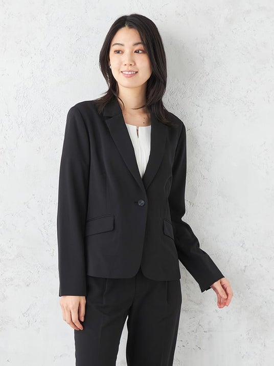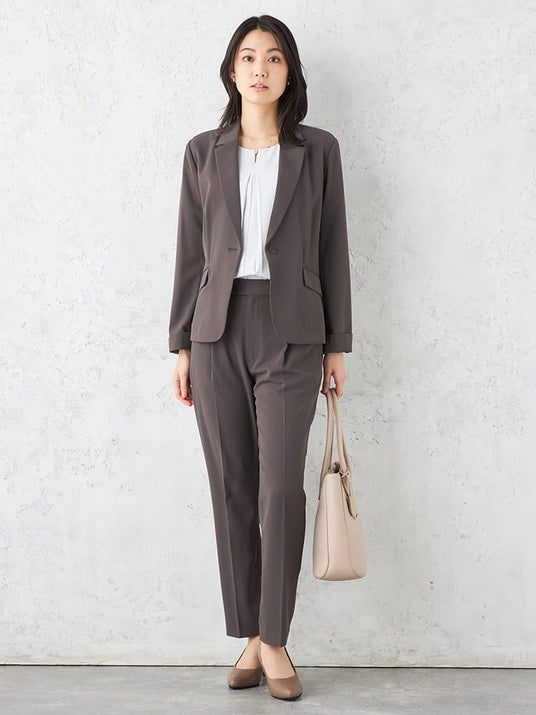 シングルジャケットとテーパードパンツというシンプルなデザインのため、