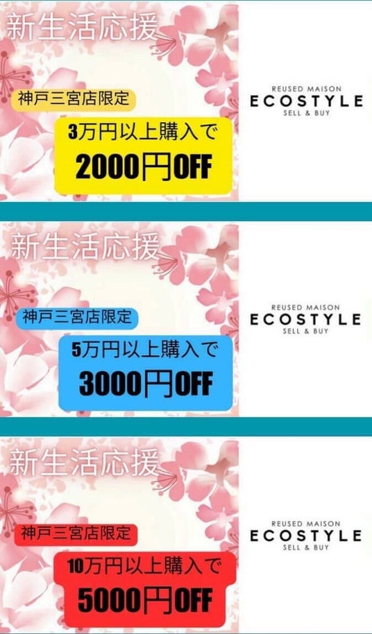 現在、神戸三宮店では以下のキャンペーンを実施中です。