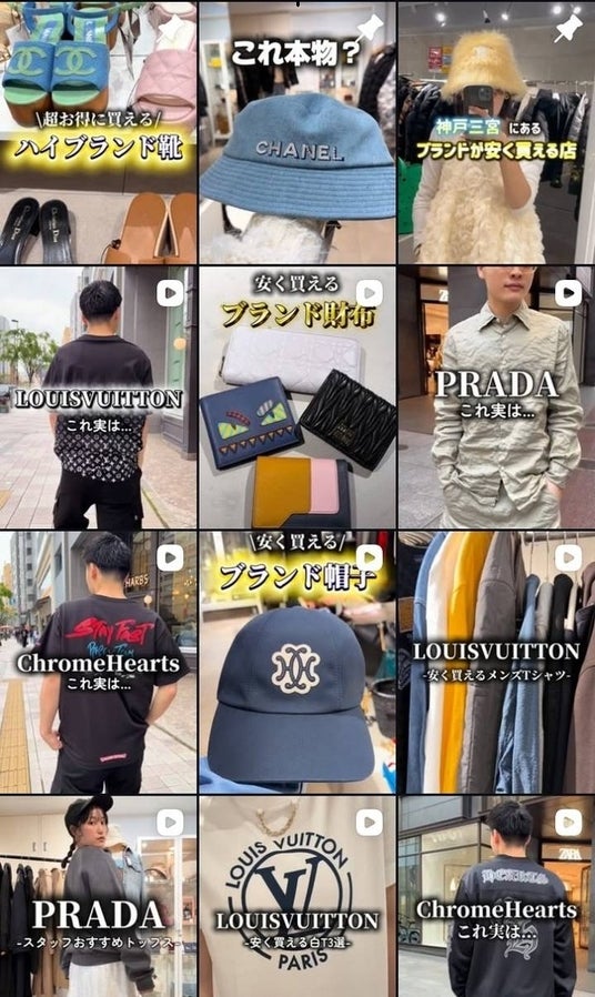 といったハイブランドアイテムを、実際の着用イメージとともに紹介することで、「ブランド古着をお得に楽しめる店舗」としての認知が拡大しています。商品のみの紹介ではなく、着用シーンを想起できる投稿スタイルが、ユーザーの購買意欲向上につながっています。