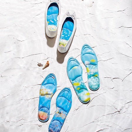 鍵井さんの色彩豊かな写真を映し込んだインソールです。