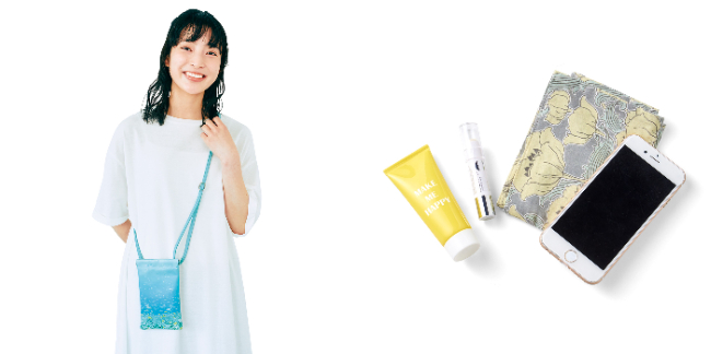 必需品を入れておくのにぴったりのサイズで、これだけでちょっとそこまでのお出かけもOK。すぐに取り出したい物を入れて、リュックなどの大きなバッグと分けて使うのにも便利です。