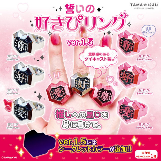 「愛」、「好」、「尊」など推しへの思いをグッとリングに閉じ込めた「誓いの好きぴリング」がver.1.5とパワーアップして帰ってきました!