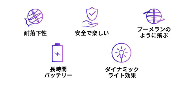 ● ブーメランやヨーヨーのように飛び、個人や複数で様々な飛び方を楽しめる
