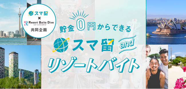 そこで、当社の「人々の成長をつくる会社として、日本中の全ての人達に海外での語学留学・異文化交流を経験して欲しい」という経営理念に賛同いただいた「リゾートバイトダイブ」を運営する株式会社ダイブと業務提携し、短期間で留学資金を貯めて効率よく留学へ行っていただける「スマ留 and リゾートバイト」の提供を開始いたしました。