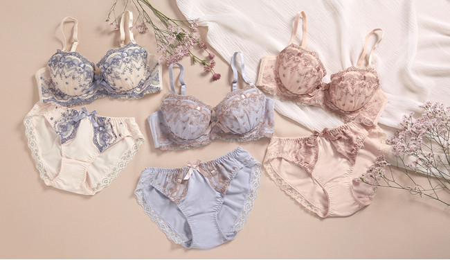 お客様の声をもとに、よりバストに寄添う設計へとリニューアルしたロングセラーブラセットから、新たにフェミニンな新色ベビーピンクが入荷しました。レースやリボンの色を同系色にし、大人可愛いカラーリング。新色を含め7色展開のコレクションは、カラーバリエーションが豊富な点も人気のひとつ。ソフトな着け心地でバストをしっかり収めてフィットするカップは、幅広い年代・体型の方に合いやすい仕様となっています。
